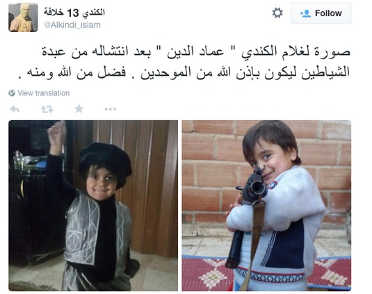 Σοκάρουν οι φωτογραφίες που ανάρτησε στο Twitter ο τζιχαντιστής Alkindy_16 (Alkindy_Islam) στις οποίες δείχνει ένα μικρό αγόρι Γιαζίντι, όχι περισσότερο από 3 χρονών, το οποίο απήγαγε από την οικογένειά του στο βόρειο Ιράκ και το παρουσιάζει ως… «σκλάβο» του.